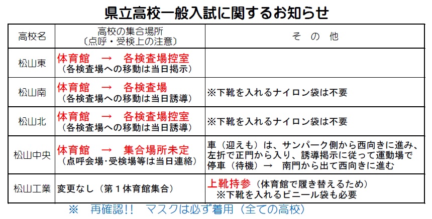 ※受検生は、各高等学校のホームページも必ず確認してください。