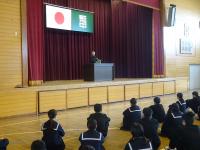 どうか、「後輩から慕われ、信頼される先輩」となってください。そして、学習や部活動を頑張るとともに、勤労や奉仕の精神を育て、